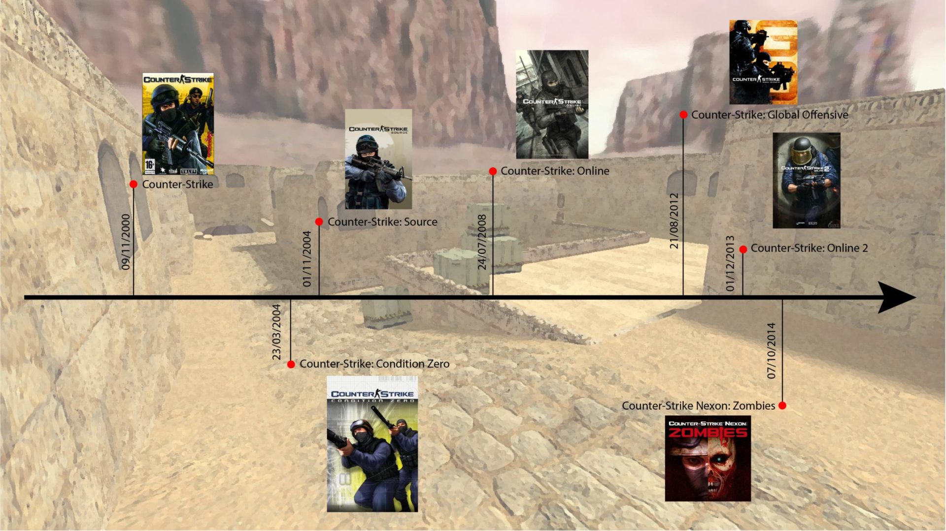 Initialement développée comme un mod pour Half-Life par Minh Le et Jess Cliffe, Valve rachète la licence dans les années 2000. La première version du jeu sortira le 19 juin 1999 et sa version définitive (1.6) le 15 septembre 2003, en même temps que Steam. Depuis, la franchise a connu d’autres opus : Condition Zero, Source et Global Offensive.