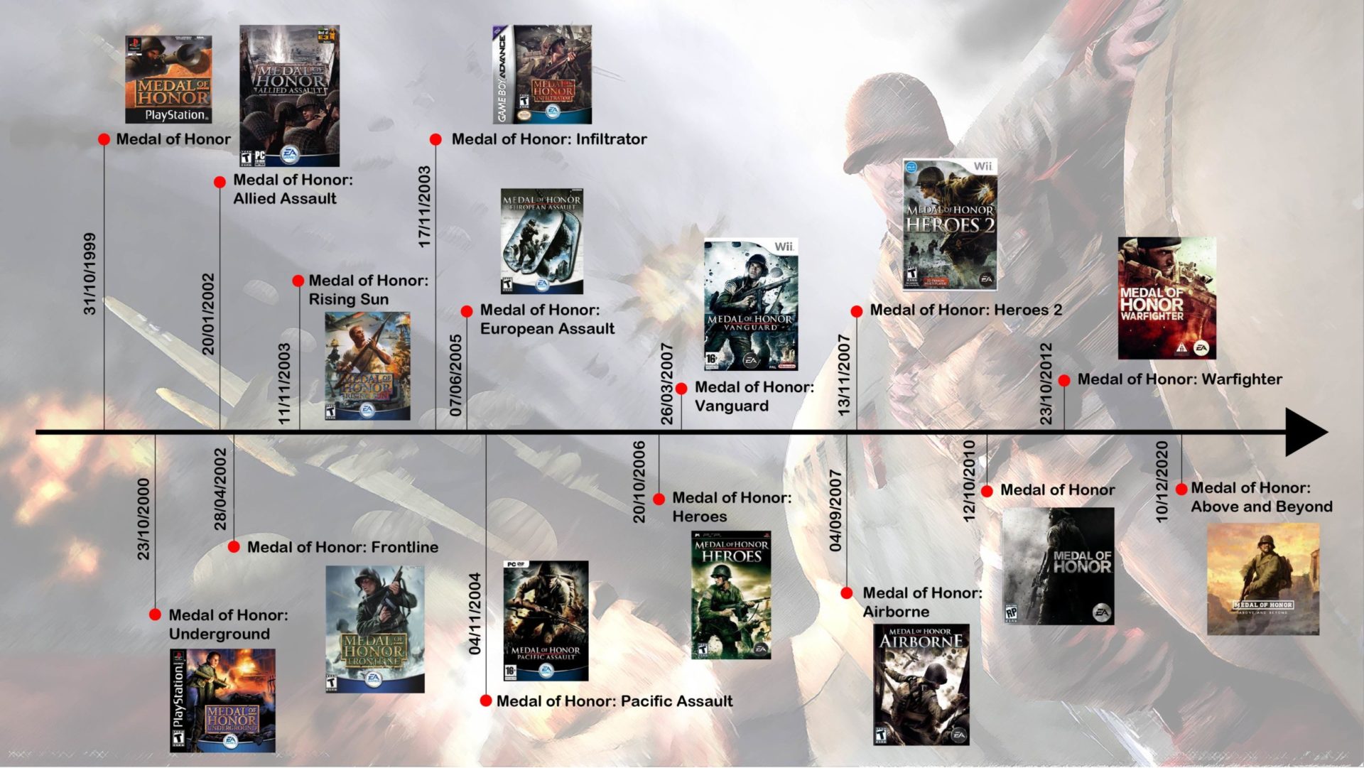 La licence Medal of Honor est étroitement liée à la Seconde Guerre Mondiale. Sur les 17 titres, seulement 2 ont abandonné cette période historique : Medal of Honor (2010) et Medal of Honor: Warfighter. En 2010, la licence subit une sorte de reboot. Sans surprise, Electronic Arts est un peu jaloux du succès d’Activision et aimerait sortir son Call of Duty annuel. Le choix est donc fait d’abandonner les nazis de 39-45 pour pour des arabes de l’ère moderne. Medal of Honor se déroule pendant la guerre d’Afghanistan, et Warfighter un peu partout dans le monde. Après l’échec commercial de ce dernier, il faudra attendre 8 ans pour revoir le nom de Medal of Honor dans un opus uniquement VR : Above and Beyond. Retour en arrière, puisque la licence reviendra à ses racines avec la Seconde Guerre mondiale.