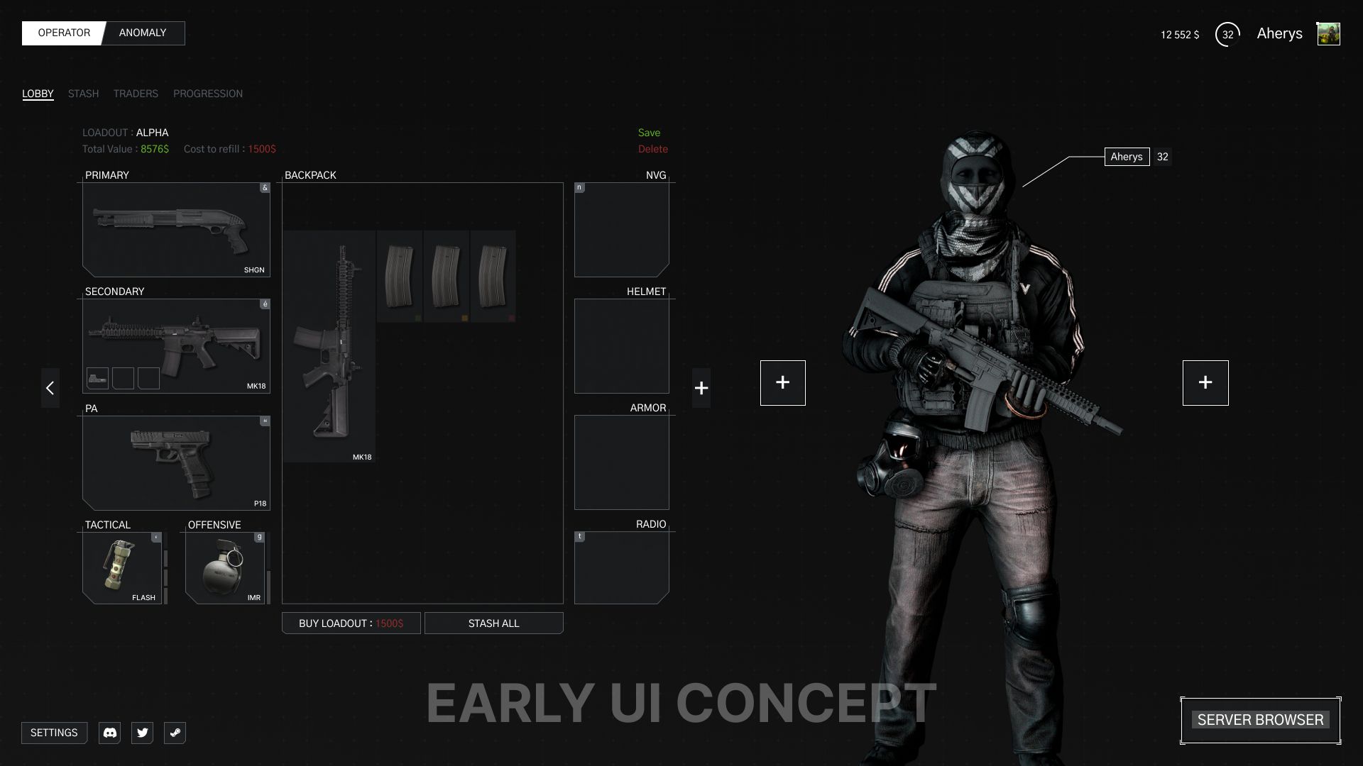Notre boucle de gameplay est pour un extraction shooter assez unique, et l’emphase est mise avant tout sur le PvP. Dans nos éléments principaux de gameplay il y’a effectivement une composante horreur, que l’on qualifierais proche de F.E.A.R / SCP. Le joueur a également la possibilité de jouer sur un gameplay asymétrique, les « Anomalies » qui peuvent envahir les raids a tout moment. Il y’a plusieurs Anomaly différente qui dispose, comme pour les humains de leur propre arbre de progression. Il ne me semble pas qu’elles soient présente sur la vidéos de Bigfry, mais celle actuellement disponible ce joue a la façon d’un AVP (possibilité de déplacement sur murs/plafond).