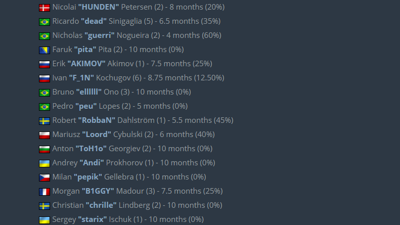 Le bug est corrigé par Valve fin août, et deux volontaires se mettent à éplucher les démos (rediffusions intégrales permettant de voir n’importe quelle action) de précédents matches. Ils trouvent qu’au moins trois coaches ont profité de l’exploit. Quelques jours plus tard, l’organisme de protection de l’intégrité des compétitions d’Esport, l’ESIC, se lance dans une grande investigation pour tenter de retrouver tous les tricheurs depuis 2016. Ils identifient d’abord 25 000 démos, puis ensuite 99 650, qu’il faut analyser et qui représentent environ 15,2To de données. Une procédure automatisée permet d’en extraire les plus suspectes qui sont ensuite vérifiées manuellement. Initialement prévue pour durer huit mois, l’enquête peut finalement se terminer en un peu moins de deux mois, grâce à de nombreuses aides et supports de toute part. Une liste sortie fin septembre, puis mise à jour en octobre affiche alors au grand jour les 36 coaches bannis pendant une durée variant de 4 à 36 mois selon le nombre d’abus du fameux Spectator bug. Vous pouvez voir le détail de la procédure employée par l’ESIC sur son site.