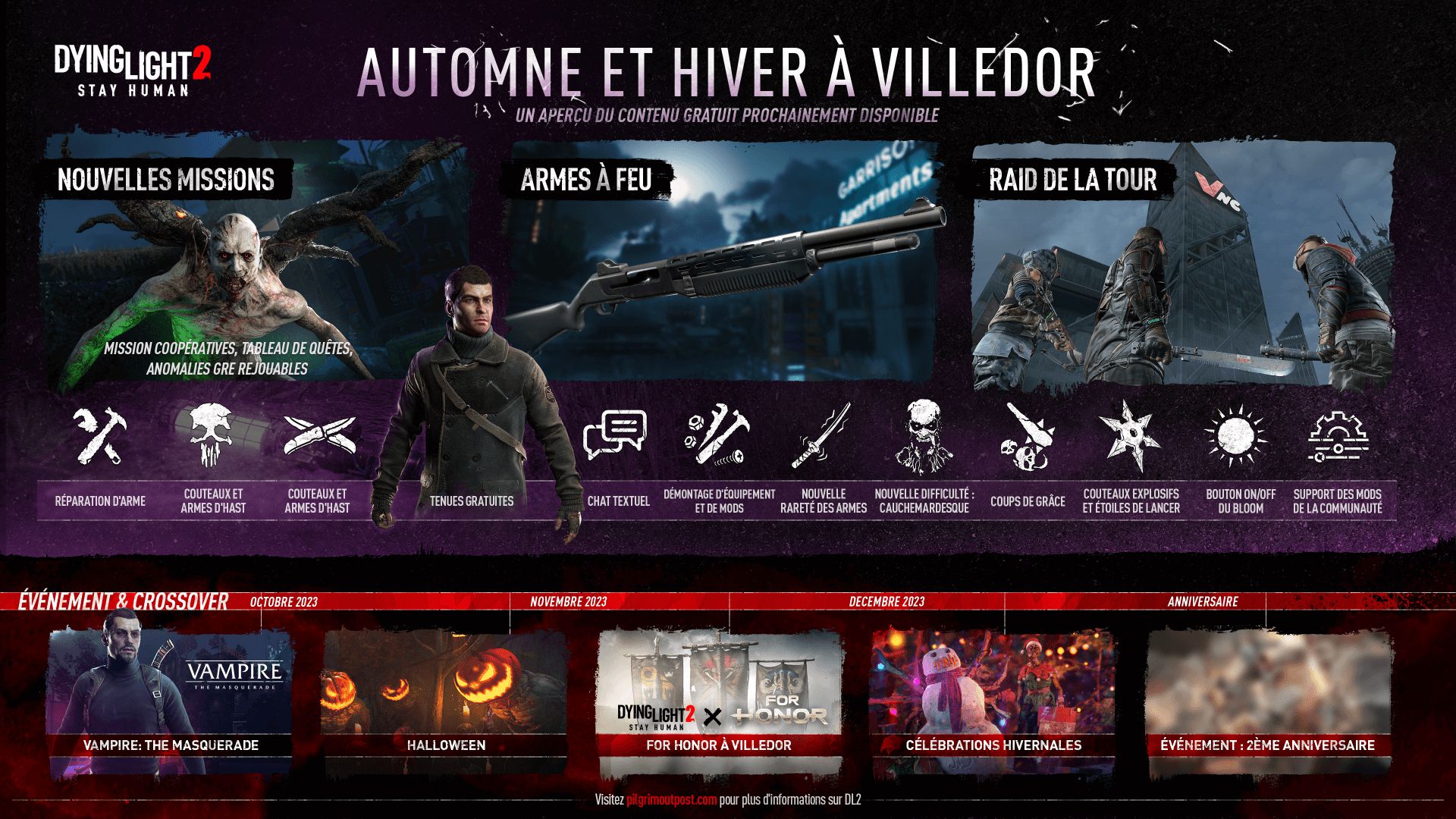 Après avoir essuyé la colère des joueurs concernant l’intégration d’une monnaie virtuelle, Dying Light 2 ne perd pas le nord et publie un billet de blog Steam pour dévoiler le prochain contenu saisonnier. Sans surprise, vous pourrez profiter des classiques événements communautaires, de nouvelles missions coopératives, de nouvelles armes à feu et du raid de la tour. D’après les développeurs, plus de détails seront communiqués lors d’une FAQ sur leur serveur officiel Discord, le 26 septembre.