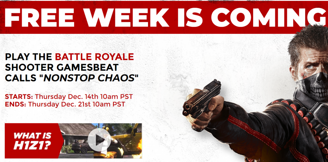 Le mode Battle Royale H1Z1: King of the Kill… non pardon, juste H1Z1 (à ne pas confondre avec Just Survive qui s’appelait auparavant H1Z1 puis H1Z1: Just Survive) va être gratuit le temps d’une semaine à partir d’aujourd’hui, 14 décembre à 19 heures, heure locale.