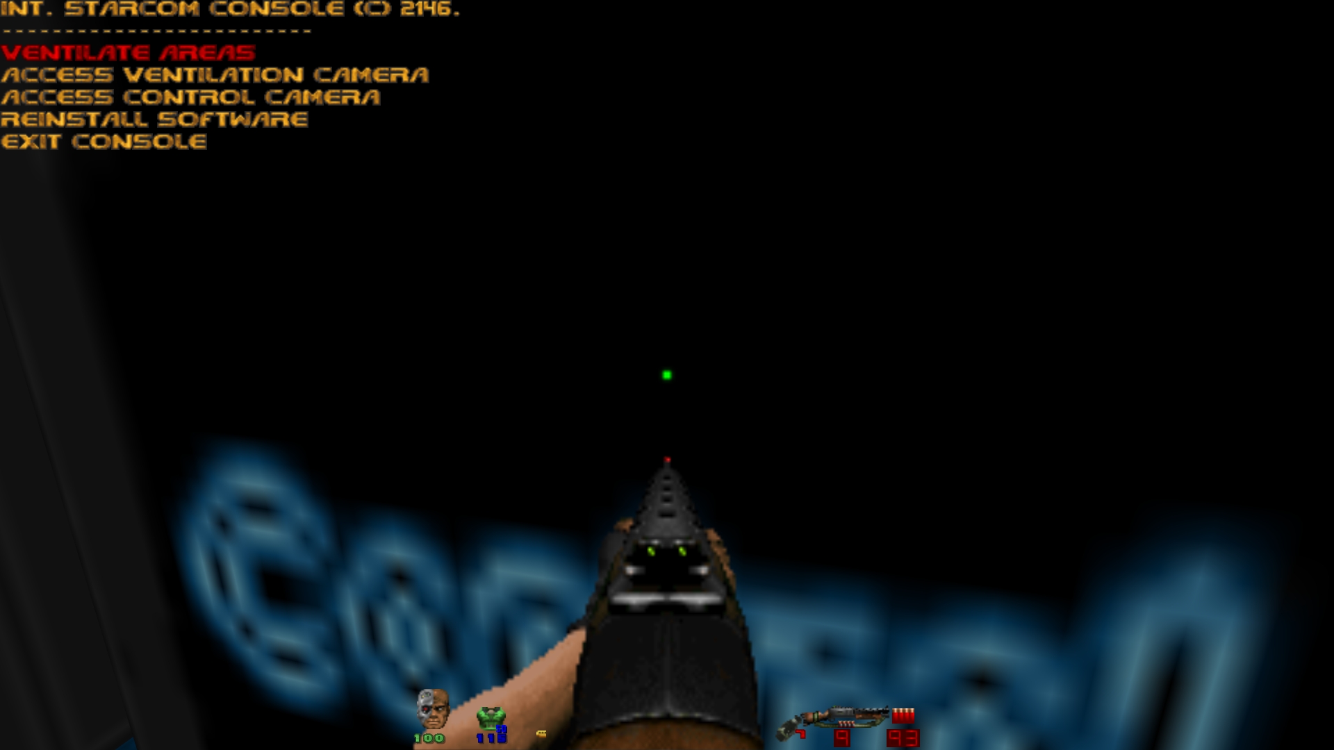 RTC-3057 est un vieux WAD de 2003, qui à l’origine devait se parer de plusieurs épisodes. Pas de bol, l’équipe périclita et il n’y en eut qu’un seul. On y incarne RTC-3057, un prototype d’humain augmenté, qui se réveille à bord d’un vaisseau en orbite autour de mars. Comme d’habitude les démons s’invitent et on doit s’échapper le plus vite possible. Bien que le scénario soit au diapason des standards Doomesques, la narration est néanmoins beaucoup plus riche que dans les autres WAD que j’ai pu faire. Elle passe par de nombreux logs, des interactions avec les systèmes du vaisseau et de la mise en scène visuelle. Ledit vaisseau se présente comme un énorme niveau séparé en plusieurs étages, reliés par des ascenseurs. Purger des circuits de vapeurs, réinstaller des systèmes corrompus ou encore ouvrir des conduits d’évacuation pour les emprunter seront le lot de RTC-3057 durant son périple vers les modules de sauvetages. L’intelligence dans l’agencement des étages, ainsi que la volonté de créer un environnement cohérent pousse à explorer les entrailles du monstre, malgré un système d’interaction avec les consoles du vaisseau qui ferait passer les menus de Skyrim vanilla pour des merveilles de game design.