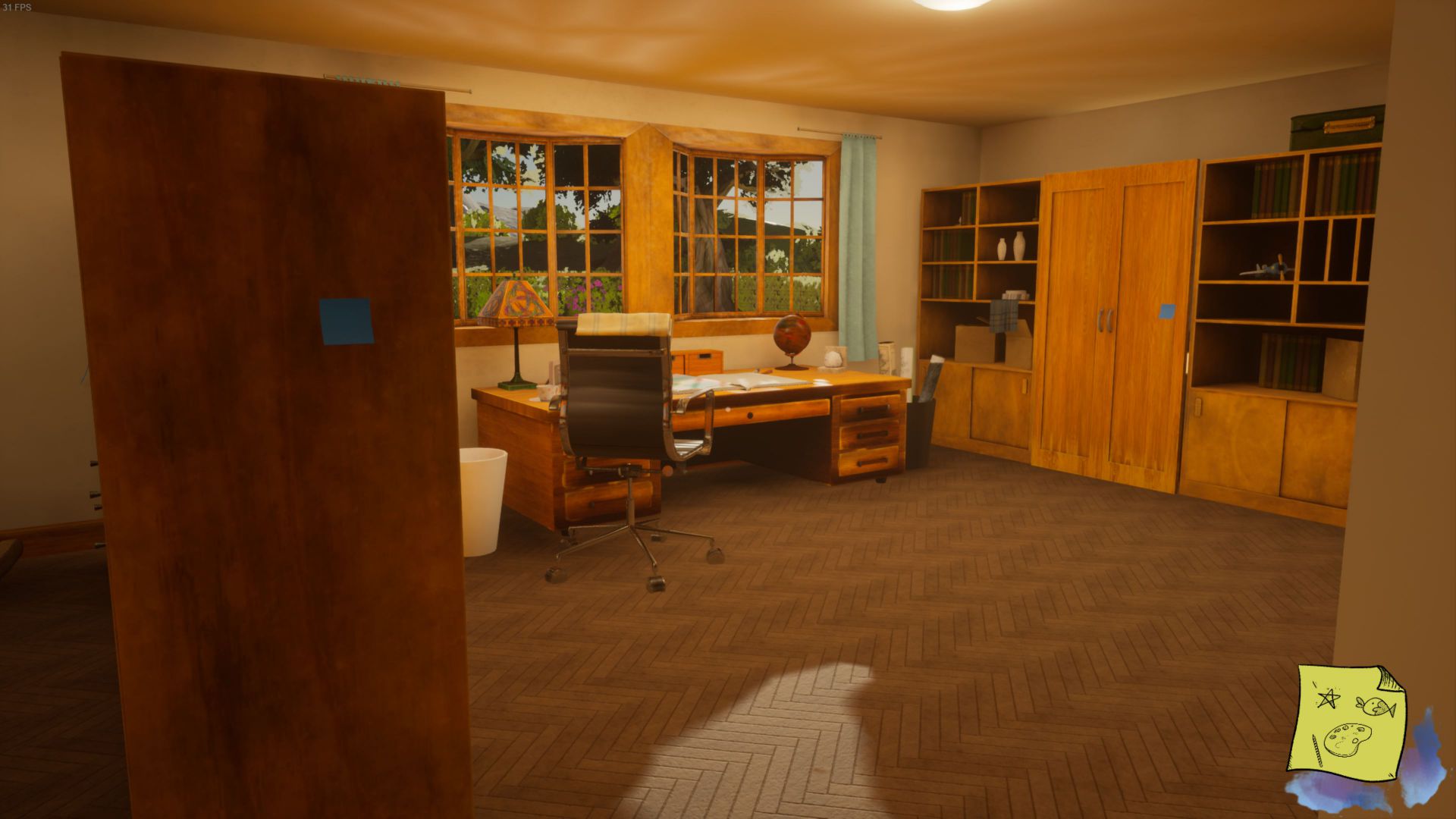 La direction artistique d’Inner Ashes est très réussie. Les décors oniriques s’enchaînent en alternance avec des passages dans la maison parsemée de post-it, témoignant de la progression de la maladie chez notre personnage. C’est globalement très joli, même si au final, les environnements restent assez simples. Néanmoins, le jeu est absurdement bridé à 30 FPS, et il n’existe aucun moyen de changer la résolution ou un quelconque paramètre graphique. C’est assez désagréable, mais on s’y fait peu à peu, le jeu n’étant pas un fast-FPS… Du coup, cela permet au titre de tourner aussi mal sur n’importe quelle machine, et on soupçonne que cette limitation est due au développement des versions console, notamment la Switch. Merci Nintendo ! À noter qu’il n’est pas non plus possible de changer ses touches, il faudra utiliser une disposition en QWERTY.