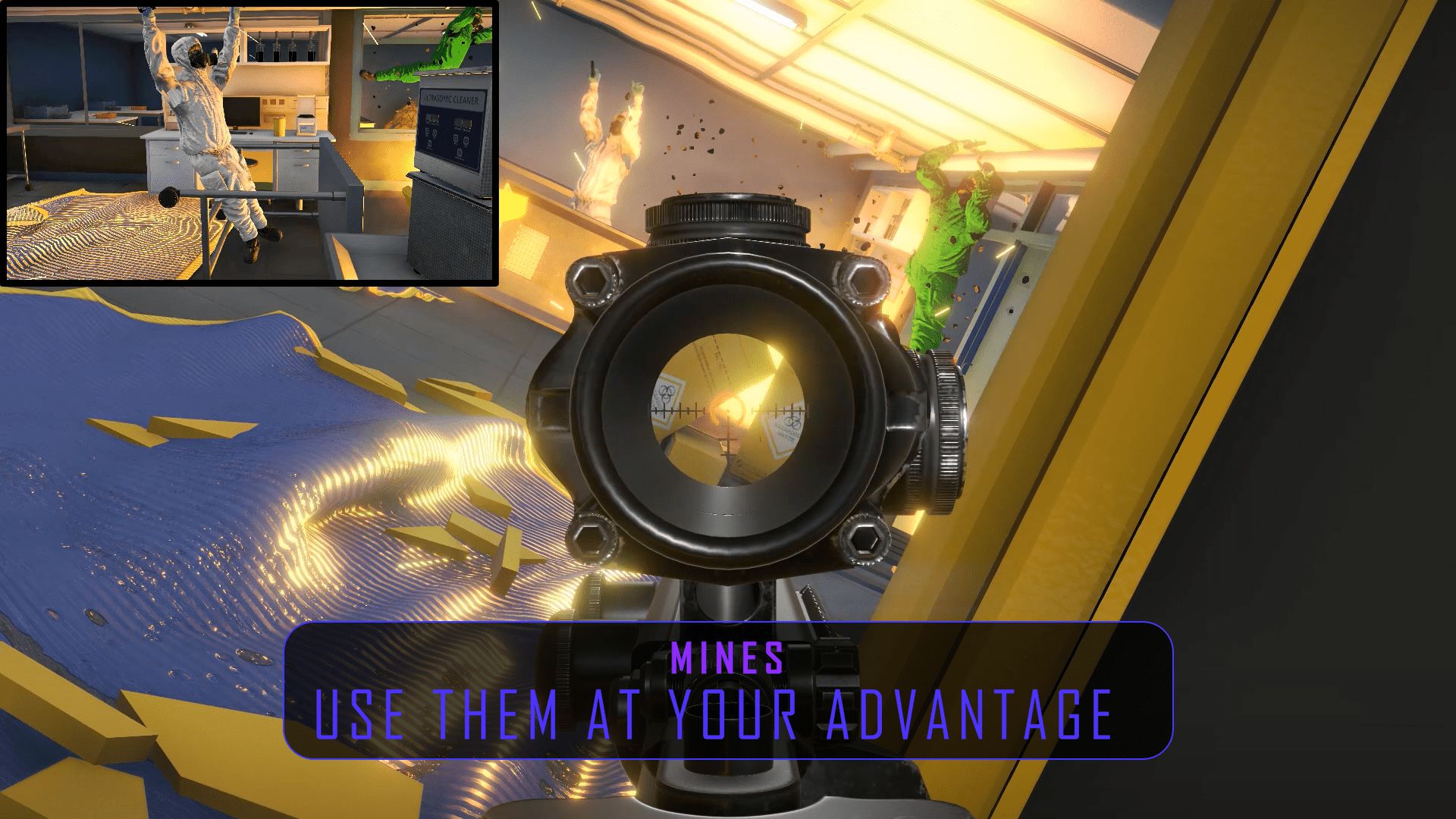 L’autre particularité du gameplay mise en avant est la préparation : après avoir choisi son équipement, on pourra consulter des caméras de surveillance, qui nous permettront de situer les ennemis et l’ordre dans lequel ils tireront. On pourra également repérer les mines et les packs de munitions. Tous ces éléments seront placés à des endroits bien définis par les développeurs, mais tout de même agencés de manière aléatoire, afin d’apporter un peu de variété dans chacune des cinq pièces de chacun des vingt niveaux.