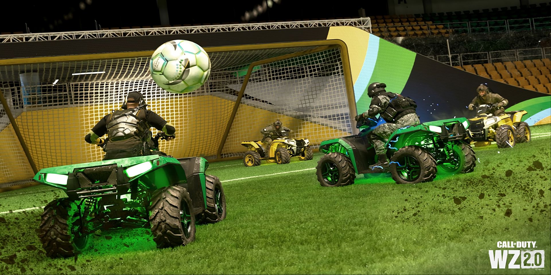 Le mode DMZ profite également de modifications pour cette update, avec l’ajout d’un laboratoire secret, dont il faudra trouver la clef et l’emplacement. Il renfermera de l’équipement haut niveau, mais sera bien protégé. Warzone 2 n’est pas oublié, puisqu’il accueille un nouveau mode de jeu – accessible uniquement aux riches, l’extraordinaire Warzone Cup, Mini Royale. Je vous conseille de vous accrocher à votre siège, car vous risquez de tomber à la renverse devant la description de ce qui sera, à n’en point douter, le meilleur mode de jeu de CallOf’. Il s’agit, idée de génie, d’un plagiat dégueulasse de Rocket League avec des quads tout pourris et des joueurs de foot connus comme chauffeurs. Allez le foot, allez le foot, allez ! On peut affirmer sans nous tromper que la majorité de nos lecteurs ont joui instantanément en lisant ces lignes. Qu’est-ce que le monde aurait donc d’autre à offrir de mieux après cela ? Plus rien d’aussi beau, inventif et excitant, à n’en point douter.