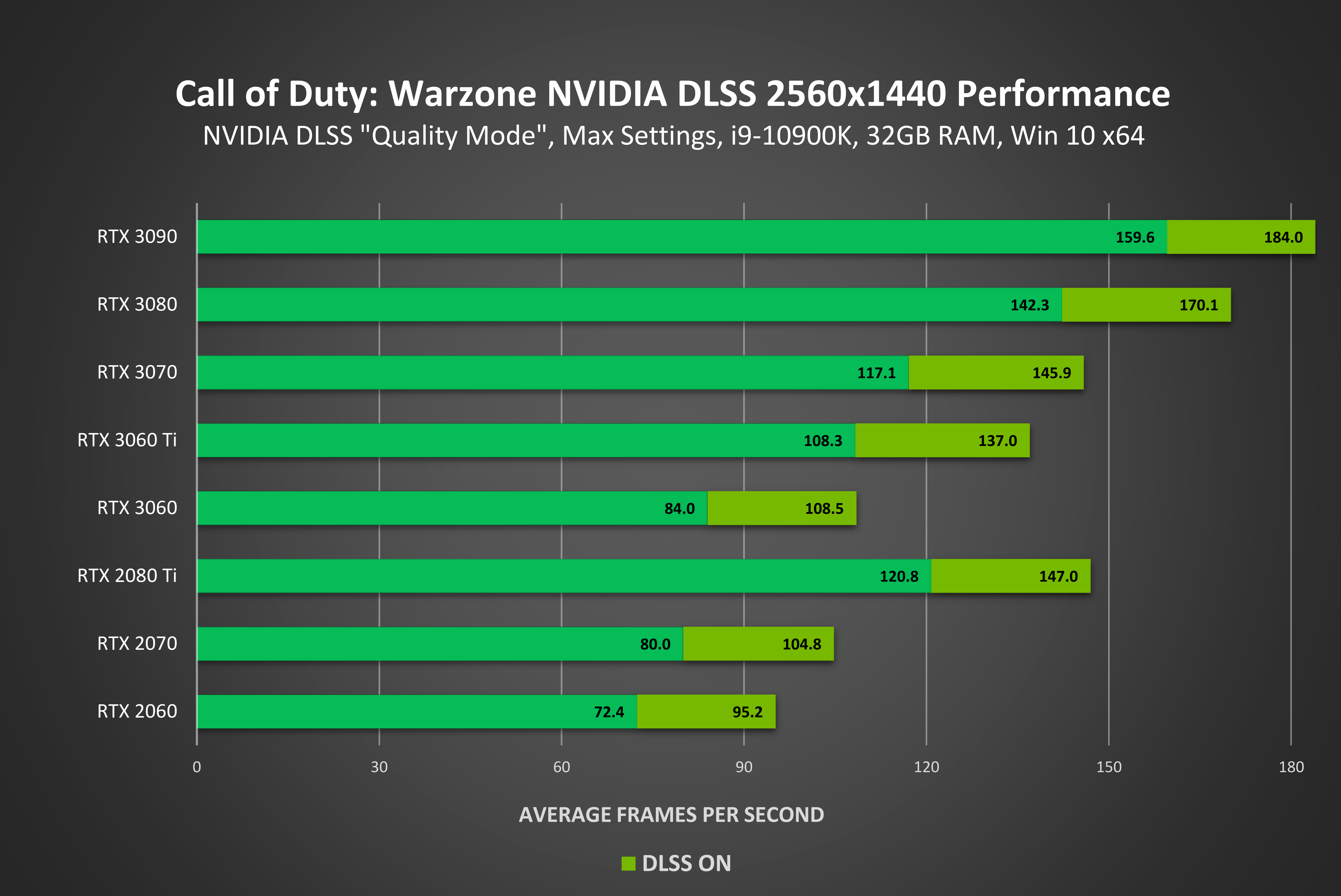 Nvidia vient d’annoncer que le DLSS était désormais disponible sur Call of Duty: Warzone, Call of Duty: Modern Warfare et Call of Duty: Black Ops Cold War. Vous pouvez voir le gain en performance que cela représente sur Warzone sur les graphiques ci-dessous ainsi que sur la vidéo qui accompagne le lancement.