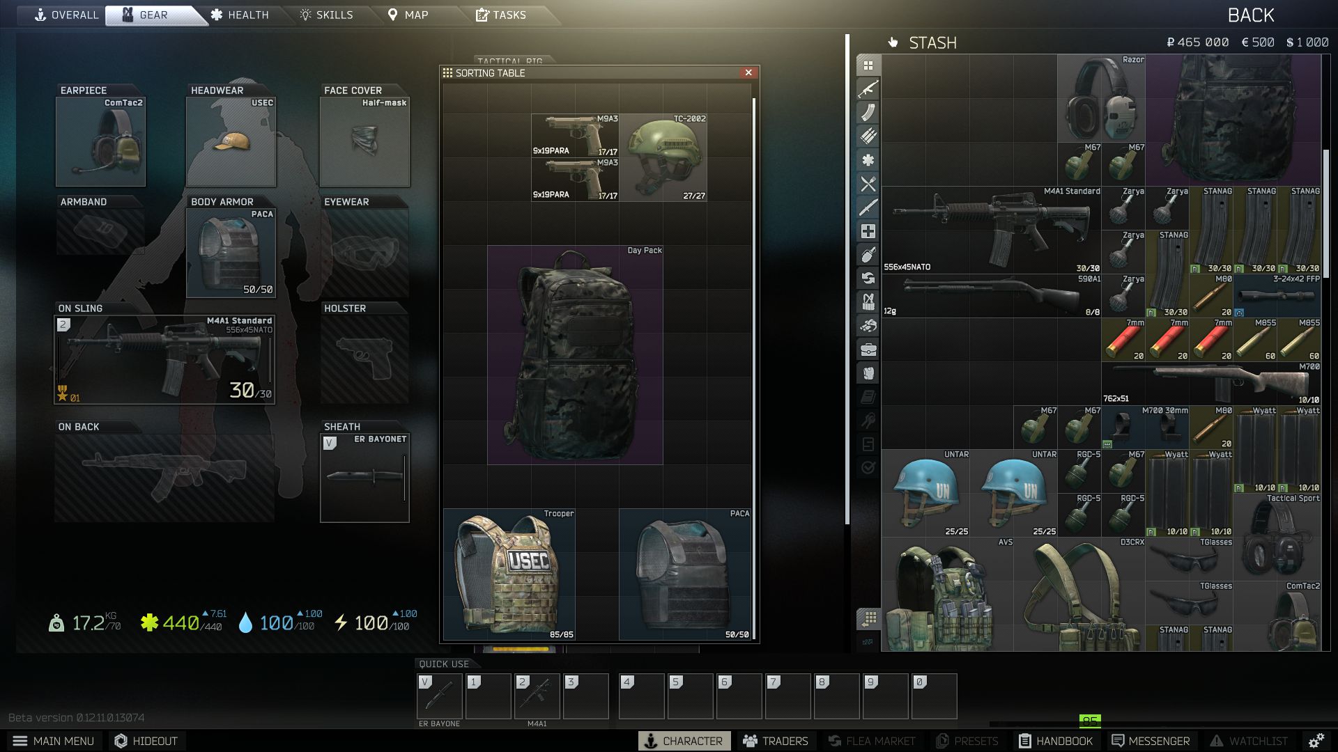 Tout d’abord, une remise à zéro et bien été effectuée. Vous pouvez de nouveau choisir votre camp, la tête immonde de votre PMC et sa voix. Vous recommencez au niveau 1 avec l’équipement fourni par votre version du jeu. Première surprise, pour accéder au flee market (marché au puce, selon la traduction in-game dégueulasse), il faudra maintenant atteindre le niveau 20. Encore un bon gros fuck pour les joueurs occasionnels.