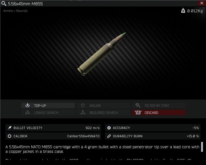 Du côté des grands changements, il y a évidemment la nouvelle extension pour la carte Factory. On en a déjà pas mal parlé, allez-donc l’explorer vous-mêmes. Sur celle-ci, vous aurez maintenant l’occasion de rencontrer Tagilla, le frère de Killa. Il dispose d’une masse, qu’il se fera un plaisir d’écraser sur votre crâne. La plupart du temps, cela sera synonyme de mort instantanée. Autre changement d’envergure, c’est la mise en place d’incidents de tir. Presque toutes les armes sont sujettes à ce type de problème. On pourra le résoudre avec les options déjà existantes, telles que la vérification de la chambre ou en examinant votre arme. Certains mods et munitions affectent la vitesse de détérioration, représentée dans les menus par la statistique « Durability burn« . L’état de l’arme influe sur la précision, le décalage avec le point d’impact et la probabilité d’enrayement. Le type de munition modifie également le risque d’incidents de tir.