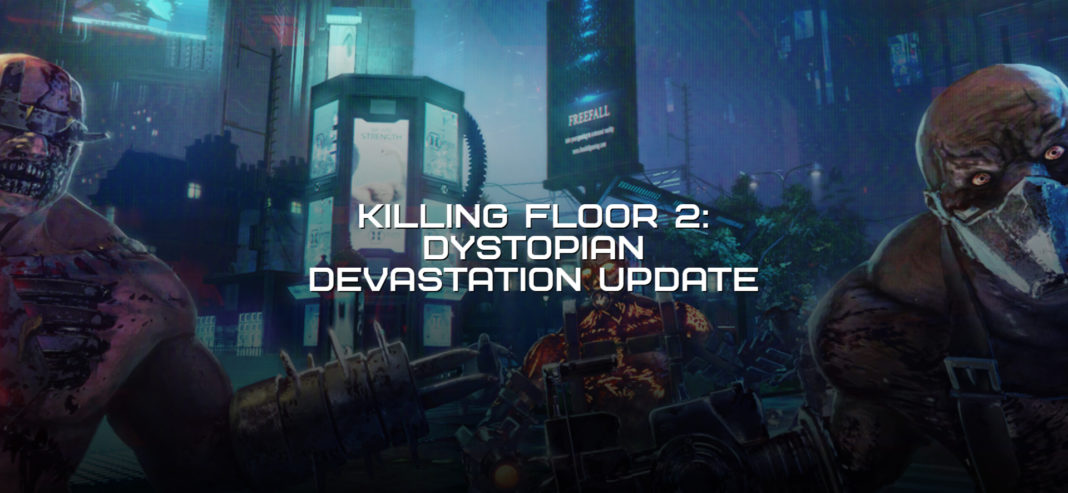 C’est le printemps, les jours rallongent, les arbres sont en fleurs, le calvaire des allergiques reprend et surtout, un nouvel évènement temporaire débute sur Killing Floor 2. Nommé Dystopian Devastation, cet event apporte tout d’abord une nouvelle carte, Dystopia 2029. Cette dernière vous emmènera éclater du clot dans les ruelles sombres d’une ville dystopique futuriste. Comme prévu dans les bonnes résolutions de Tripwire Interactive, deux nouveaux défis hebdomadaires font leur apparition avec cette mise à jour : Blood Thirst et Coliseum. Deux nouvelles armes sont également de la fête. Le HRG Beluga Beat est gratuit et équipe le Sharpshooter, le Gravity Imploder quant à lui devra être acquis contre des espèces sonnantes et trébuchantes pour rejoindre l’arsenal du Demolitionist. Enfin, qui dit évènement de Killing Floor 2, dit succès spécifiques et cosmétiques à gogo.