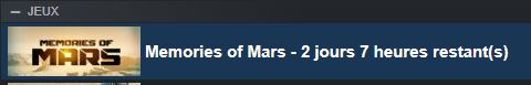 Au départ, je souhaitais simplement m’atteler à alimenter la home de Nofrag en ajoutant une news concernant Memories of Mars. En effet ce dernier semble en promotion, -50% jusqu’au 9 octobre et se laisse essayer pendant le weekend. Mais déjà, quand je n’ai vu aucune news officielle préciser la durée de l’essai – que ce soit sur Steam ou le site du jeu – j’ai commencé à regretter. Sur Steam il faut d’abord se contenter d’un :