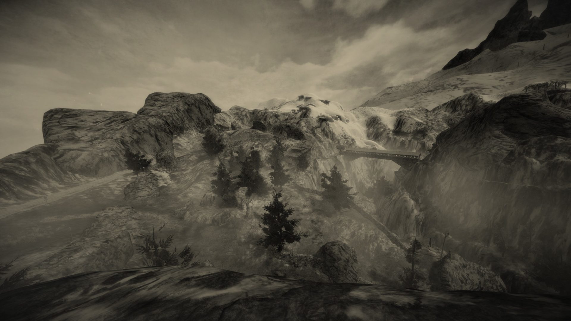 Mundaun est le projet d’un seul homme, Michel Ziegler. Après 6 ans de développement et un peu d’aide pour la musique et certaines parties du code, ce monsieur a réussi à sortir son jeu d’aventure horrifique à la première personne. Mais pour ce faire, il n’a pas seulement appris les rouages d’Unity, non, cela aurait été trop simple. Michel s’est tout simplement dit, “je vais apprendre à dessiner et toutes les textures de mon jeu seront des dessins réalisés au crayon” (citation bien entendu complètement inventée et sûrement très réductrice du cheminement de pensée du monsieur). En résulte un titre bien plus ambitieux que les centaines de jeux d’horreur à lampe torche qui pullulent dans les entrailles de Steam. Mundaun vous invite à aller faire une petite randonnée tout en nuances de gris dans le canton des Grisons, sur un sommet des Alpes suisses. Mais la balade ne sera pas de tout repos pour notre héros, un vieil homme mystérieux ayant décidé de vous gâcher l’ascension.