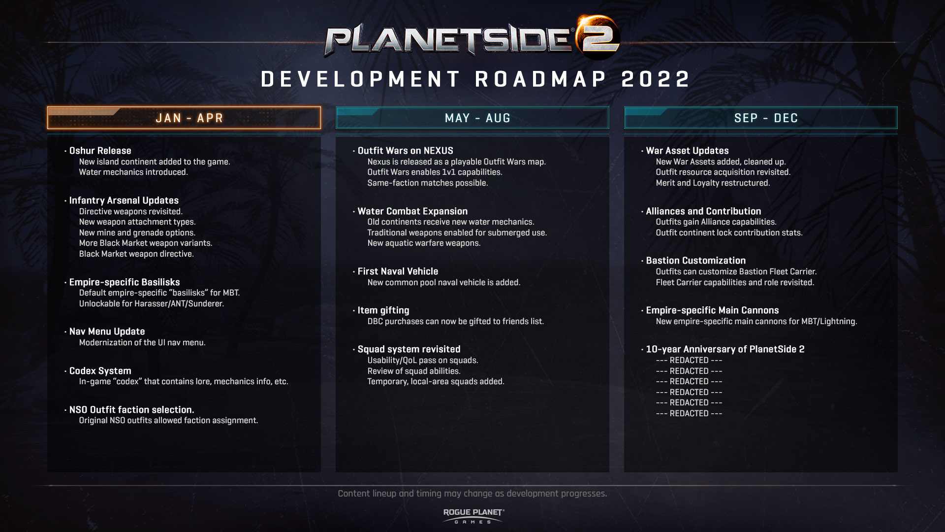 Enfin, 2022 marquera les dix ans de Planetside 2, et les développeurs réservent donc quelques surprises aux joueurs pour fêter ça à la fin de l’année.