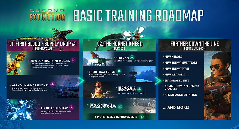 Le FPS en coop vraiment pas folichon et où l’on extermine des dinosaures Second Extinction a reçu hier sa première mise à jour. Si la plupart de ce nouveau contenu se concentre sur la résolution de bugs en tout genre, on notera tout de même l’apparition de niveaux de difficulté. D’après les développeurs, les contrats ne devraient plus être de simples promenades de santé mais représenter un véritable challenge impossible à réaliser en solo. Les joueurs qui préfèrent s’amuser tout seul devront eux patienter jusqu’à décembre, où une nouvelle mise à jour leur apportera satisfaction.