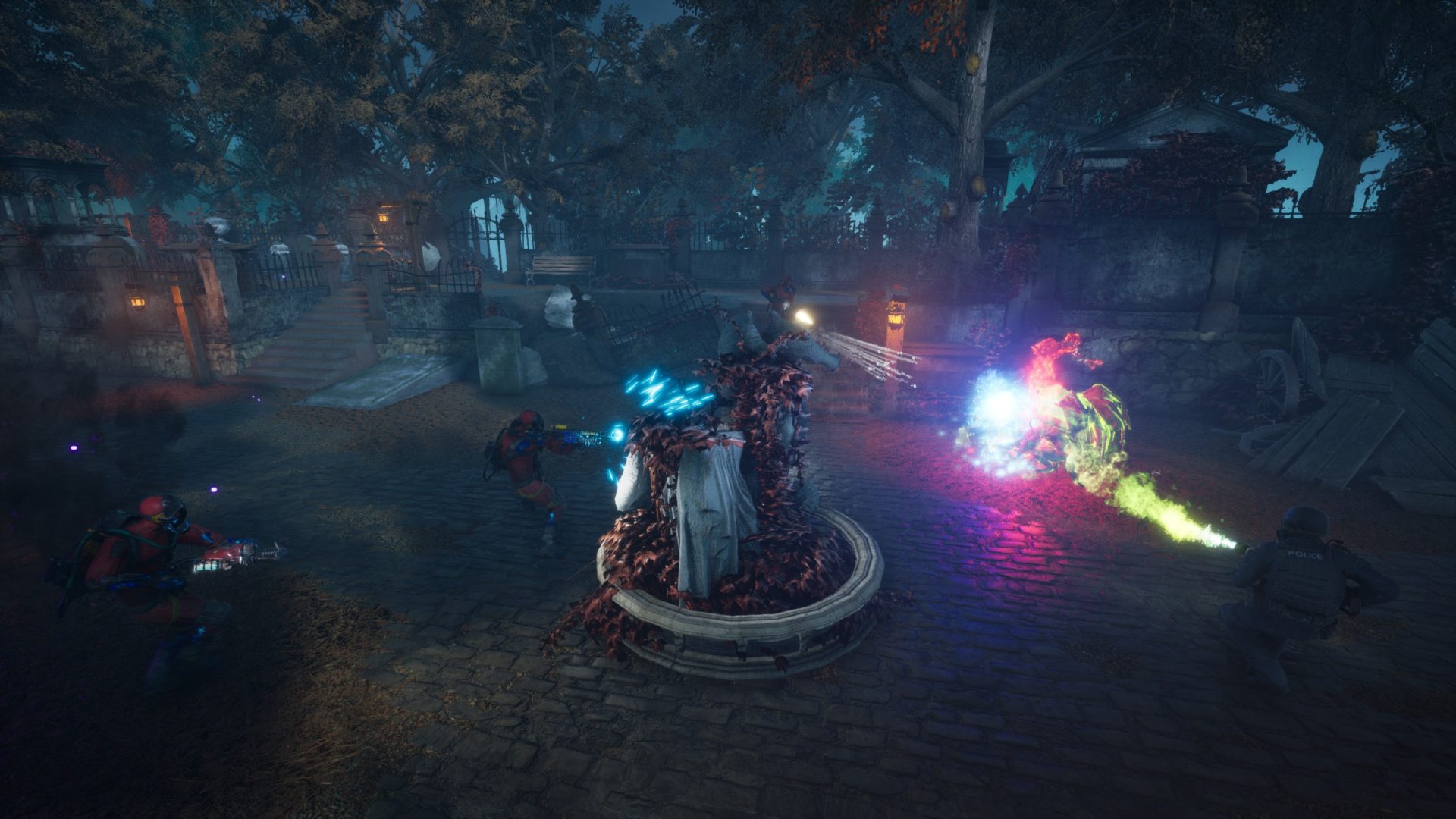 Les capacités passives ne sont pas en reste, car il est aussi très utile d’en choisir une en fonction de son gameplay. Elles peuvent offrir une régénération de santé automatique, augmenter les munitions des armes ou même courir plus vite. Si avant chaque partie, les chasseurs ont une minute et trente secondes pour choisir leur équipement pendant que les fantômes se cachent, il est à noter que l’on peut en changer à tout moment durant la partie grâce au générateur présent au point d’entrée de chaque carte. Cependant, les fantômes peuvent le détruire afin de nous empêcher tout changement. Cela peut leur rendre la seconde partie du match plus délicate, car on se retrouve alors coincé avec des armes et gadgets plus efficaces pour la chasse que pour la défense.