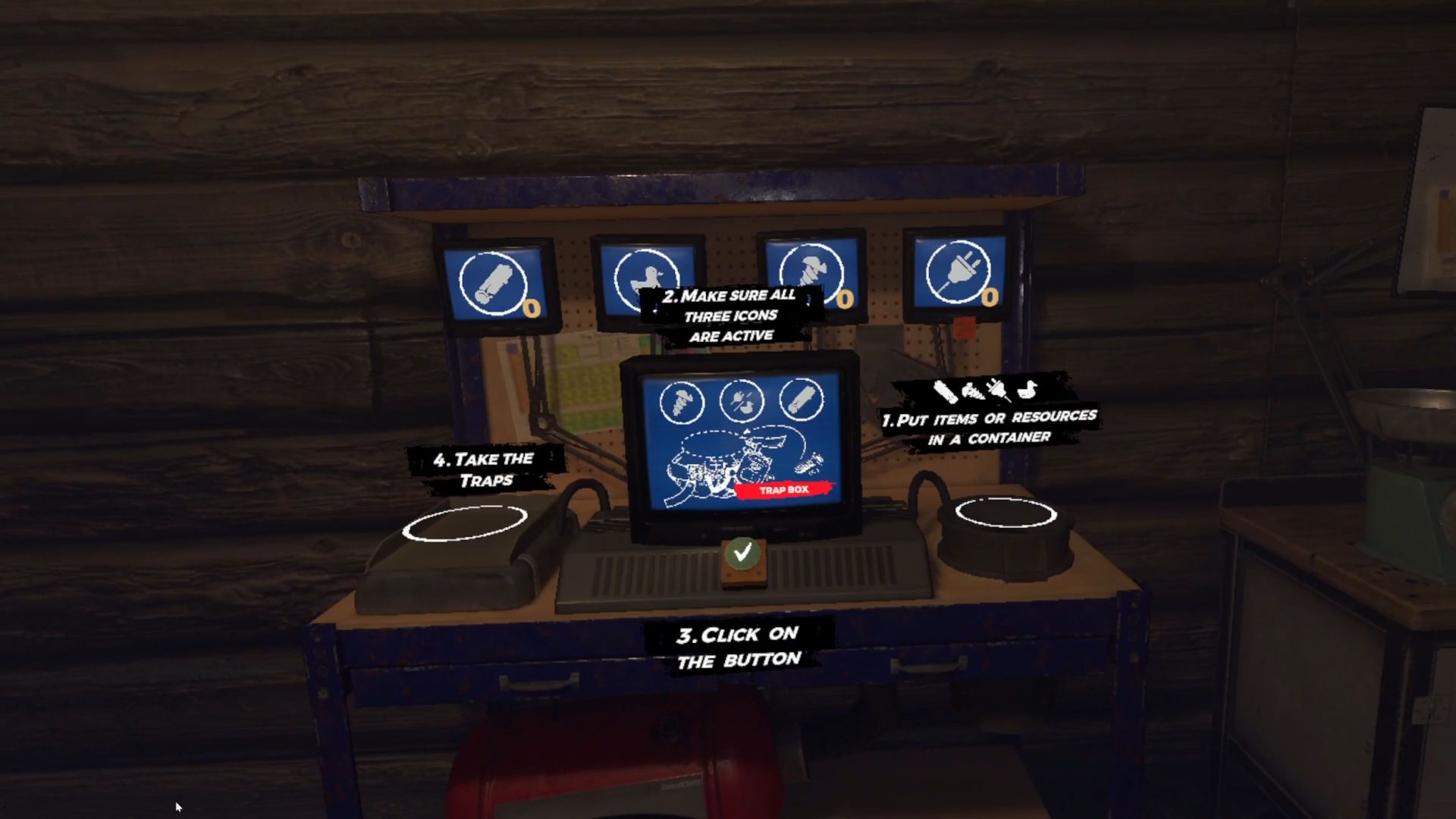Requisition VR vous place dans la peau d’un survivant qui cherche à atteindre un bunker sécurisé. Pour cela, il faudra survivre sur quatre cartes (pour l’instant), en remplissant des objectifs. Cela peut-être de récupérer un bidon d’essence pour remplir son réservoir, ou encore de trouver un nouveau pneu. Certains déclenchent des vagues d’ennemis qu’il faudra décimer pour passer à la suite. Un mode horde est également disponible, qui consiste, comme son nom l’indique, à vous battre contre des hordes de zombies. Une pause entre chaque vague vous permettra de trouver de quoi vous défendre. Mais la particularité du jeu, c’est qu’on vous laisse le choix des armes. Et quand on parle d’armes, c’est en fait tout ce qui peut vous tomber sous la main en parcourant le niveau : un balai, une cruche, une pelle ou encore un panneau stop. Bon, par contre, la cuiller en bois sera quand même moins léthale qu’un katana ou qu’une bonne hache. Mais on peut également associer les objets pour les rendre plus efficaces. Toutes les combinaisons sont possibles, car il suffit de placer deux objets l’un près de l’autre et de les entourer de scotch. Parfois, c’est juste de la merde, mais d’autres fois, cela permet d’avoir plus d’allonge, et même, lorsque les développeurs l’ont prévu spécifiquement, de détourner les utilisations de base. Par exemple, il est possible d’attacher un petit chalumeau sur un souffleur de feuilles pour le transformer en lance-flammes, ou un téléphone sur une scie à métaux fixée à un manche à balai pour en faire une hache électrique. Toutes les armes s’usent, il faudra donc varier souvent pour finir les niveaux. On nous permet également de créer des pièges ou des bombes, en utilisant des genres d’établis, dans lesquels on doit apporter des objets de différents types (métalliques, plastiques, chimiques…). Cette mécanique n’est pas dénuée d’intérêt, mais c’est tout de même assez contraignant et finalement peu efficace par rapport à une bonne batte de baseball. D’autre part, il arrive que l’on trouve des armes et des munitions en fouillant dans les tiroirs et les placards : pistolet, fusil à pompe, fusils d’assaut… Le gunfeel est plutôt bon, mais les cartouches s’épuisent rapidement. En résumé, on s’amuse plutôt bien à défoncer le crâne des morts-vivants qui cherchent à vous croquer.