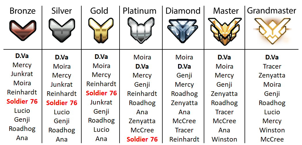 - Soldier 76 et Junkrat disparaissent du Top 10 au rang Diamond.