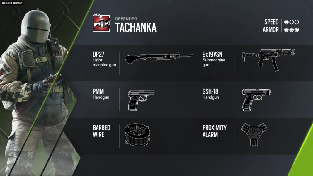 Comme annoncé précédemment, on a maintenant les détails concernant le rework de Tachanka. L’opérateur russe vire le trépied de sa DP27 et sa tourelle devient donc son arme principale. Il perd au passage la capacité de s’équiper du SASG-12, mais garde son 9x19VSN. Pour remplacer la tourelle, il est doté d’un lance-grenades, le Shumikha. Les grenades de ce dernier sont incendiaires et rebondissantes, ce qui permet maintenant à Tachanka de bloquer des zones sans s’exposer. Enfin, il obtient une nouvelle capacité passive : withstand, qui lui permet de se relever après être incapacité, comme Zofia. Pas de changement à noter côté gadget secondaire et arme de poing.