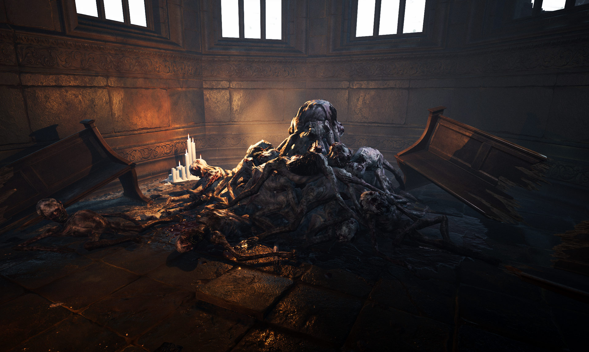 S’il y a bien un point positif dans Ad Infinitum, c’est le côté visuel. C’est graphiquement réussi, les effets de lumières sont bien maîtrisés et voir un no man’s land en flammes sous un clair de lune, ça a franchement de la gueule. J’ai beaucoup aimé certains décors, comme dans l’usine ou encore l’infirmerie, où l’ambiance visuelle et la direction artistique apportent son petit plus et rendent le jeu un peu moins ennuyeux à regarder. Le bestiaire, lui aussi, est plutôt pas mal avec des modèles bien détaillés. Une technique visuelle bien maitrisée qui n’a pas à rougir de ses concurrents.