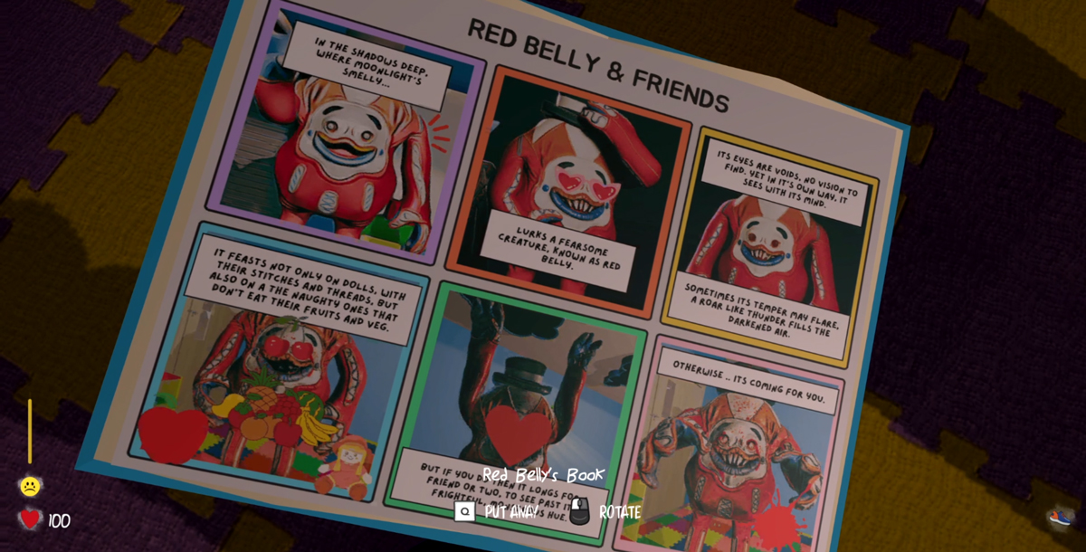 L’histoire commence dans votre lit de petit marmot. Entouré de vos magnifiques horribles poupées, vous écoutez sagement votre mère qui essaie de vous border en vous racontant l’histoire d’un petit enfant qui collectionnait des poupées effrayantes, parce qu’il se sentait en sécurité avec. Jusqu’au jour où celles-ci ont toutes disparu. Vous vous réveillez en pleine nuit à cause de l’orage, mais aussi parce qu’une grosse dispute éclate dans la maison. Vos poupées ne sont plus là, il faut alors les retrouver. Si l’histoire est un peu vague au départ, il faudra attendre de terminer le jeu pour que tout s’explique.