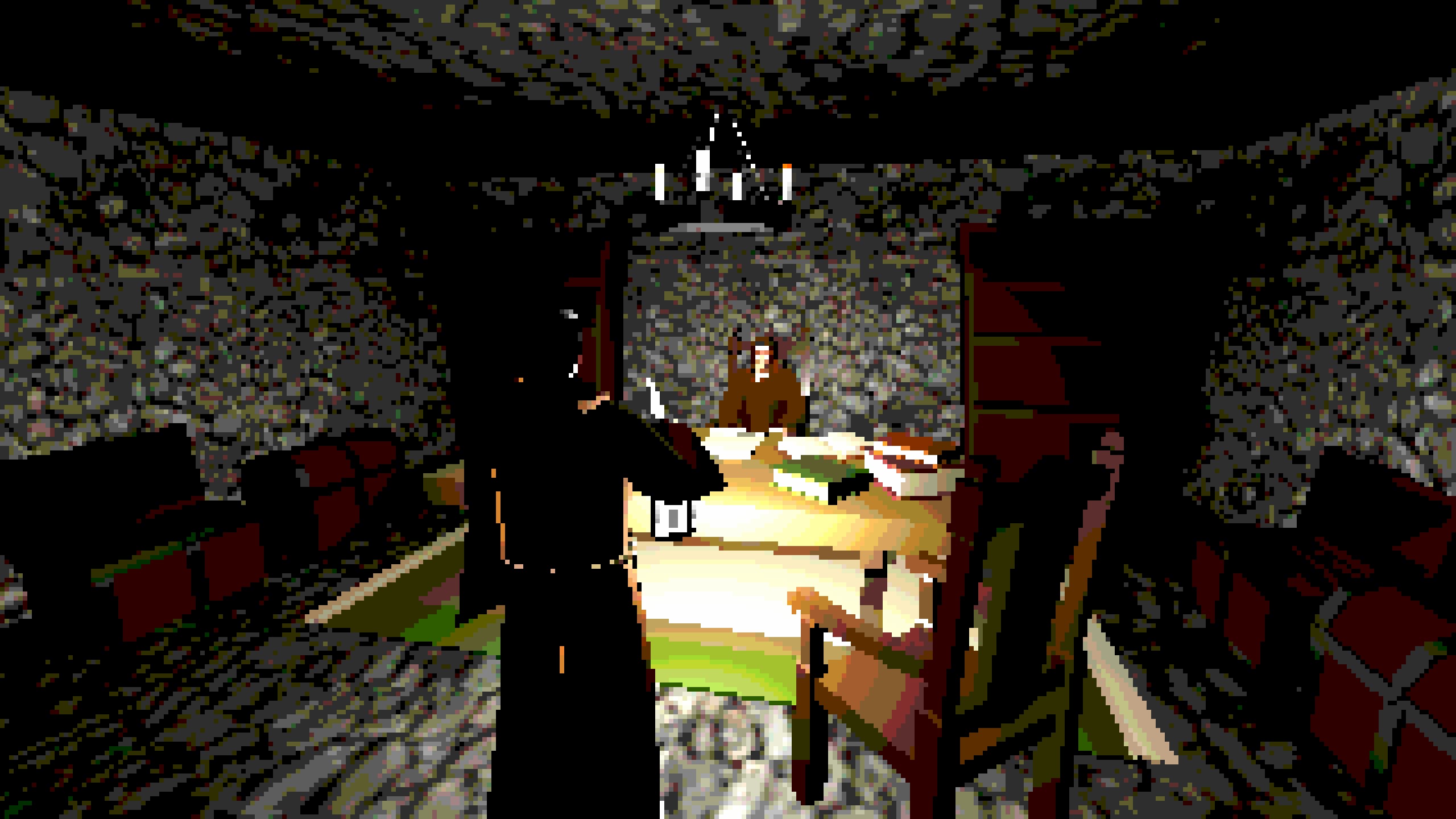 Torple Dook avait déjà réalisé, entre autres, Hand of Doom au sein du premier volume de la Dread X Collection. Ici, il signe le seul TPS de l’anthologie. S’inscrivant dans le même univers que le jeu susmentionné, vous y incarnez le Frère Silence devant affronter les créatures maléfiques attaquant son monastère. Il s’agit d’un shooter assez classique dans ses mécaniques mais doté d’une ambiance très lourde et de visuels rétro pixélisés très particuliers. Une expérience convenue mais pas désagréable. Enfin… une fois nos yeux habitués aux gros pixels et au contraste extrême des graphismes.