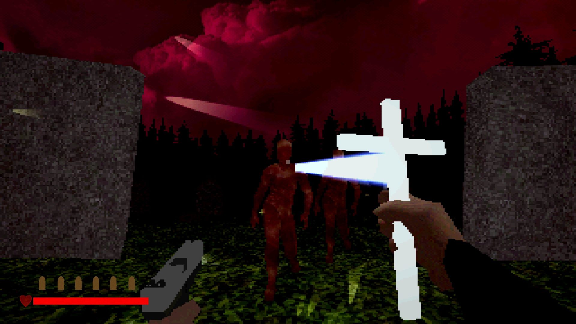 Un prêtre spécialisé dans l’exorcisme est invité à intervenir dans le manoir d’un collègue possédé. Un bon ouvrier a de bons outils, aussi il emporte avec lui son équipement sacré : sa croix et son glock. Deux éléments indissociables du catholicisme qui lui permettront d’affronter des hordes de créatures décharnées hantant les couloirs de la maison, tout en explorant les lieux et en accomplissant quelques énigmes enfantines. Si le jeu est trop facile – on aurait par exemple aimé que les munitions soient limités afin de rajouter de la tension – il reste de bonne facture avec ses visuels rétro et son ambiance pesante. Le titre culmine notamment avec une fin dantesque dont je ne vous dévoilerai rien afin que la surprise reste intacte.