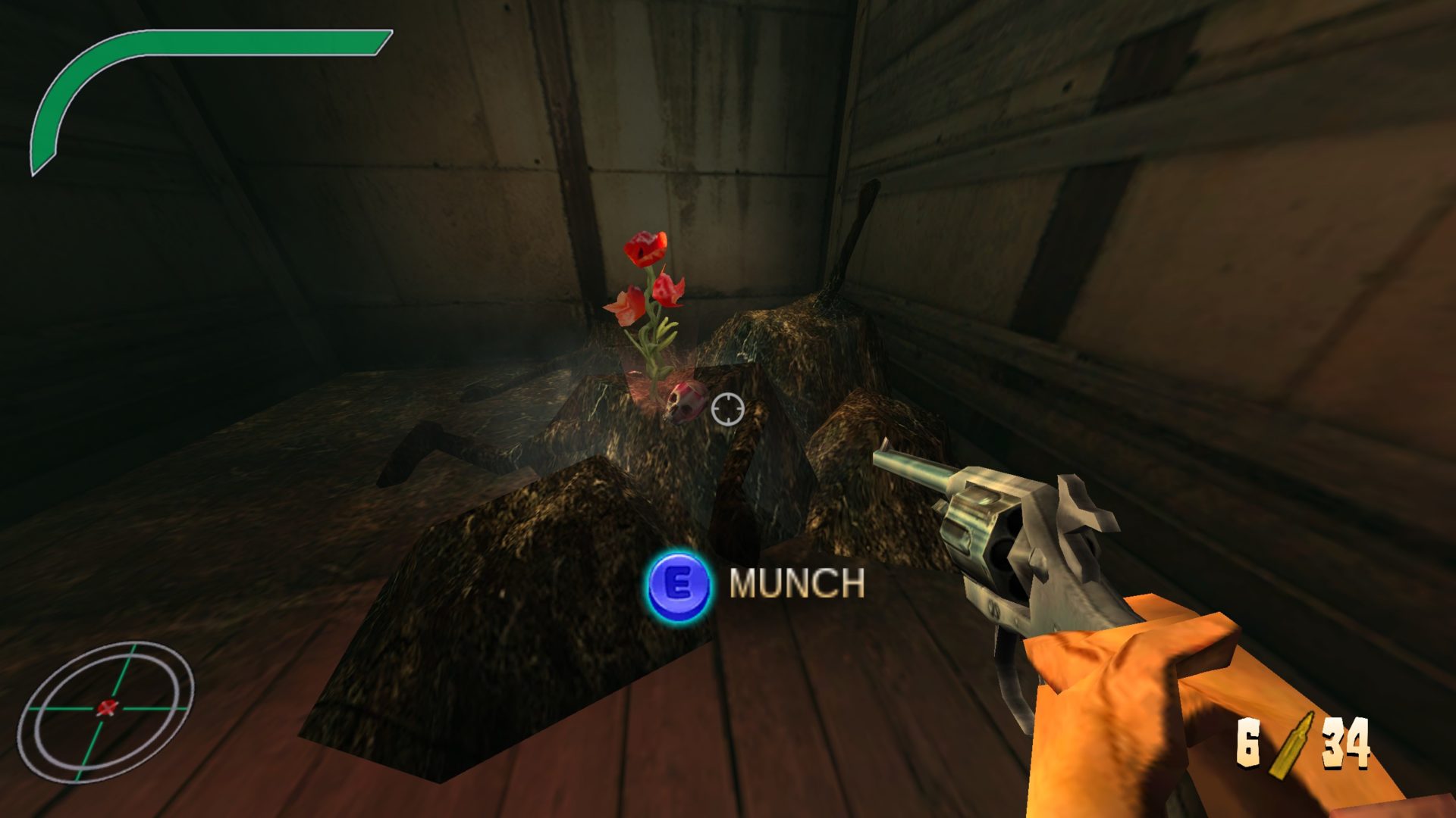 Encore un titre complètement fumé : vous devez retrouver votre fille, celle-ci vous demande d’entrer dans un sous-marin (!) qui est en réalité une porte vers un monde fantasmagorique (!!) dans lequel vous affronterez des ennemis tournesol-pieds (!!!) avec des armes étranges tout en suivant un chemin balisé. De temps à autre, des images d’une jeune fille mutante apparaissent à l’écran pour vous faire peur. J’avoue n’avoir rien compris à cette expérience, probablement la plus faible de la sélection : ce n’est intéressant ni visuellement, ni au niveau du gameplay, ni pour son ambiance.