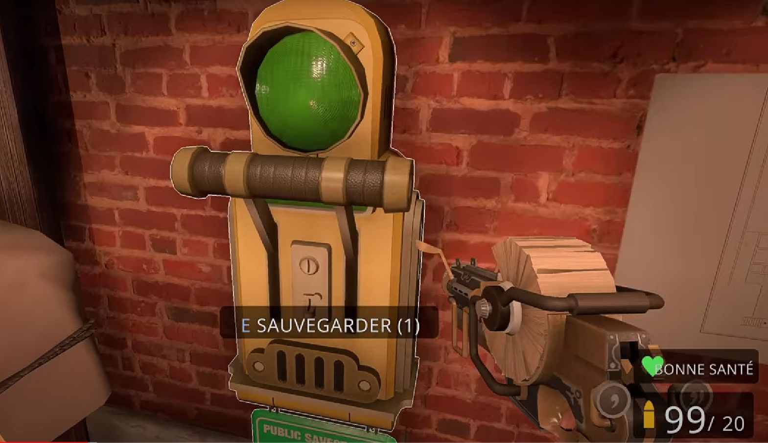Et le choix peut s’avérer cornélien, car la difficulté est plutôt élevée. Les quatre points de vie de notre personnage peuvent rapidement s’envoler, d’autant plus qu’il n’est pas possible de sauvegarder à tout moment. Il faut, d’une part, trouver une machine de sauvegarde, mais aussi des jetons, dans un hommage aux machines à écrire de Resident Evil – encore lui ! En fonction de notre aisance à parcourir les couloirs du studio, on sera plus ou moins frustré par cette méthode. Heureusement, les développeurs ont pensé à ceux qui voudraient juste profiter de l’ambiance, car un mode de difficulté « Friendly » apporte tout un tas d’options d’accessibilité personnalisables, comme des ennemis plus faibles, des checkpoints plus fréquents, et la suppression des jetons. Après, ce système de sauvegarde est, en lui-même, une des mécaniques du jeu, à vous de voir si vous préférez la conserver afin d’avoir l’expérience prévue initialement par les auteurs.