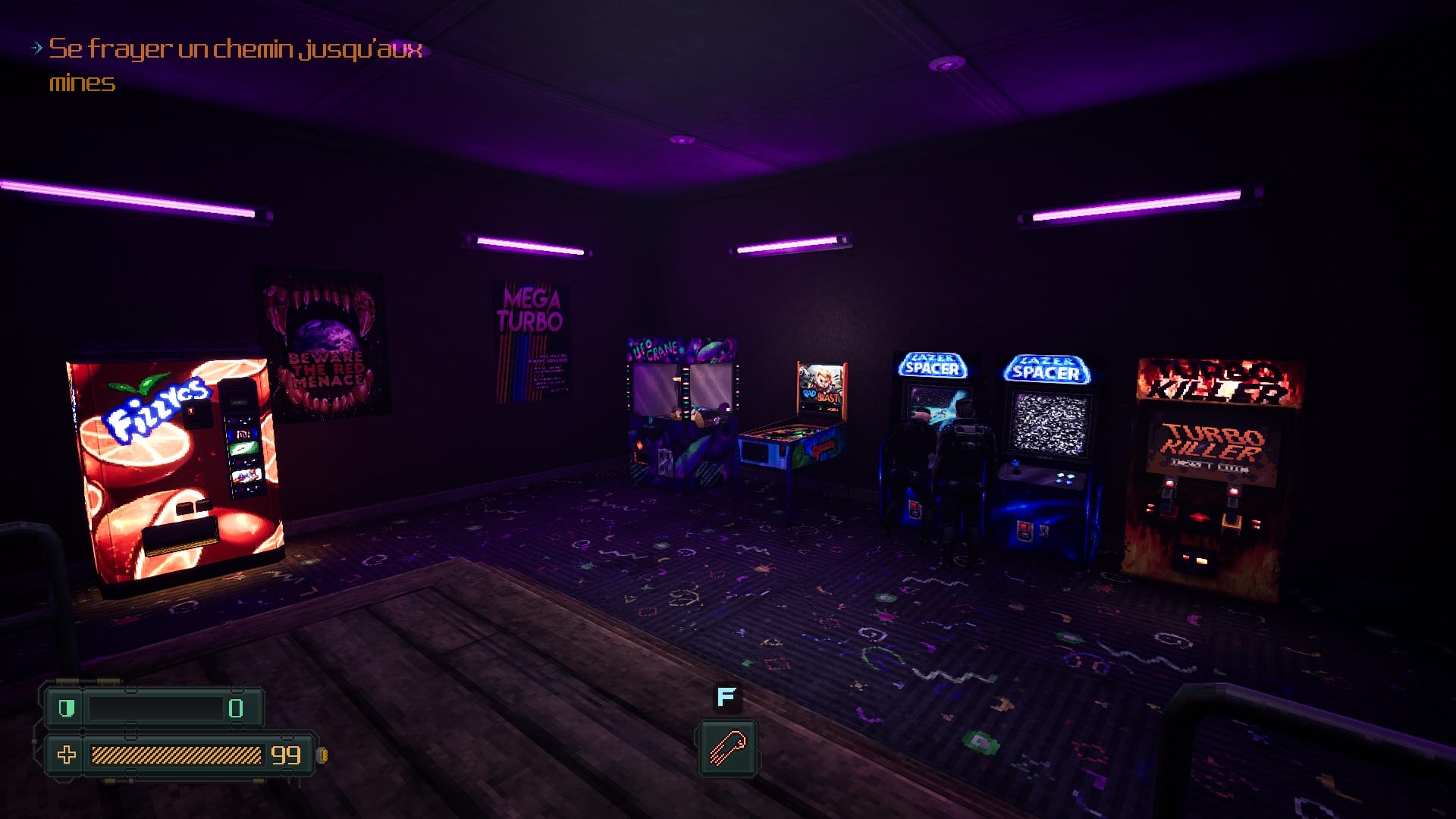 Dès les premières minutes, qui feront office de tutoriel, vous apprendrez à consulter des ordinateurs et à appréhender votre environnement avec cette fameuse interactivité survendue par les devs. Ne vous inquiétez pas, il faudra bien tuer tuer tuer, mais ces PC vous permettront de déclencher des mécanismes, récupérer des codes d’accès et lire des pavés de textes inutiles. C’est tellement réaliste qu’il vous faudra cliquer sur sur le bouton « retour », apparaissant sur l’écran de l’appareil, pour revenir à la page précédente. Et si on se penche sur les autres éléments interactifs, on ne peut que constater que c’est très mal fichu et totalement inutile. Quel est l’intérêt de jouer avec les lumières de bureau, les tasses, les bloc-notes, le régulateur de la ventilation, les bornes d’arcades et autres ? Je n’ai pas franchement trouvé, sachant qu’il est possible à Shelly de ramasser automatiquement les munitions, les packs de soins ou de l’armure, sans avoir besoin d’interagir – paye ta cohérence. Et je vous explique pas la galère que c’est, dès qu’il faut ouvrir un casier pour récupérer des munitions en hauteur et que le curseur de la souris ne détecte pas l’élément. Mais en même temps, ce sera le cadet de vos soucis, vu ce qui vous attendra par la suite, car nous allons bientôt débuter notre voyage dans le monde merveilleux des incohérences et des bugs.