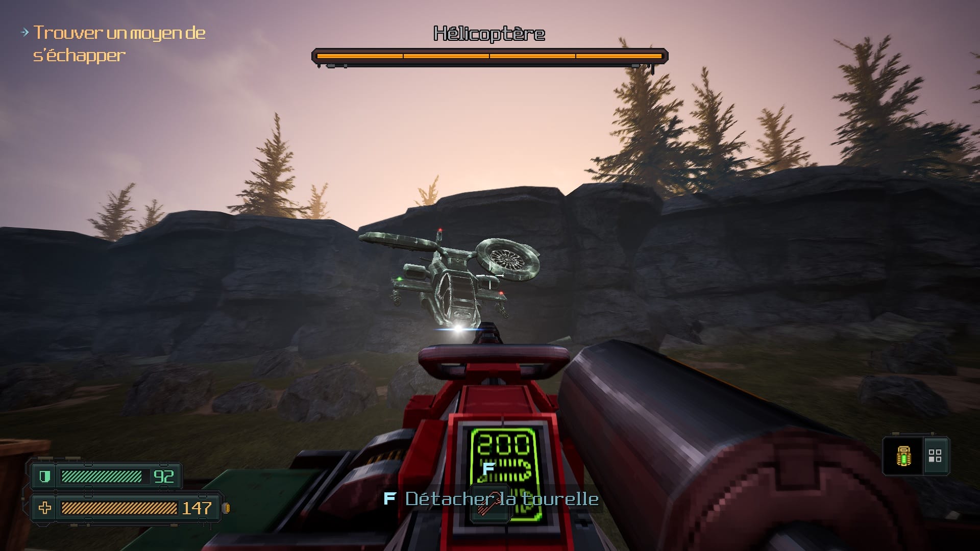 En effet, la difficulté paraît mal équilibrée, ce qui, d’une part, rallonge artificiellement la durée du jeu, et d’autre part, rend certains passages très frustrants. Les tourelles sont un exemple parfait avec l’auto-lock, ou les vagues d’ennemis en continu vers les derniers niveaux. De plus, il faut souligner le manque variété dans les ennemis – sans doute le symptôme d’une sortie précipitée – avec le recyclage d’une sorte de boss intermédiaire dans les derniers niveaux. Pareil pour les deux premiers boss, tous deux des hélicoptères. Heureusement, vous affronterez également des robots et un mutant géant, pour varier un peu les plaisirs.