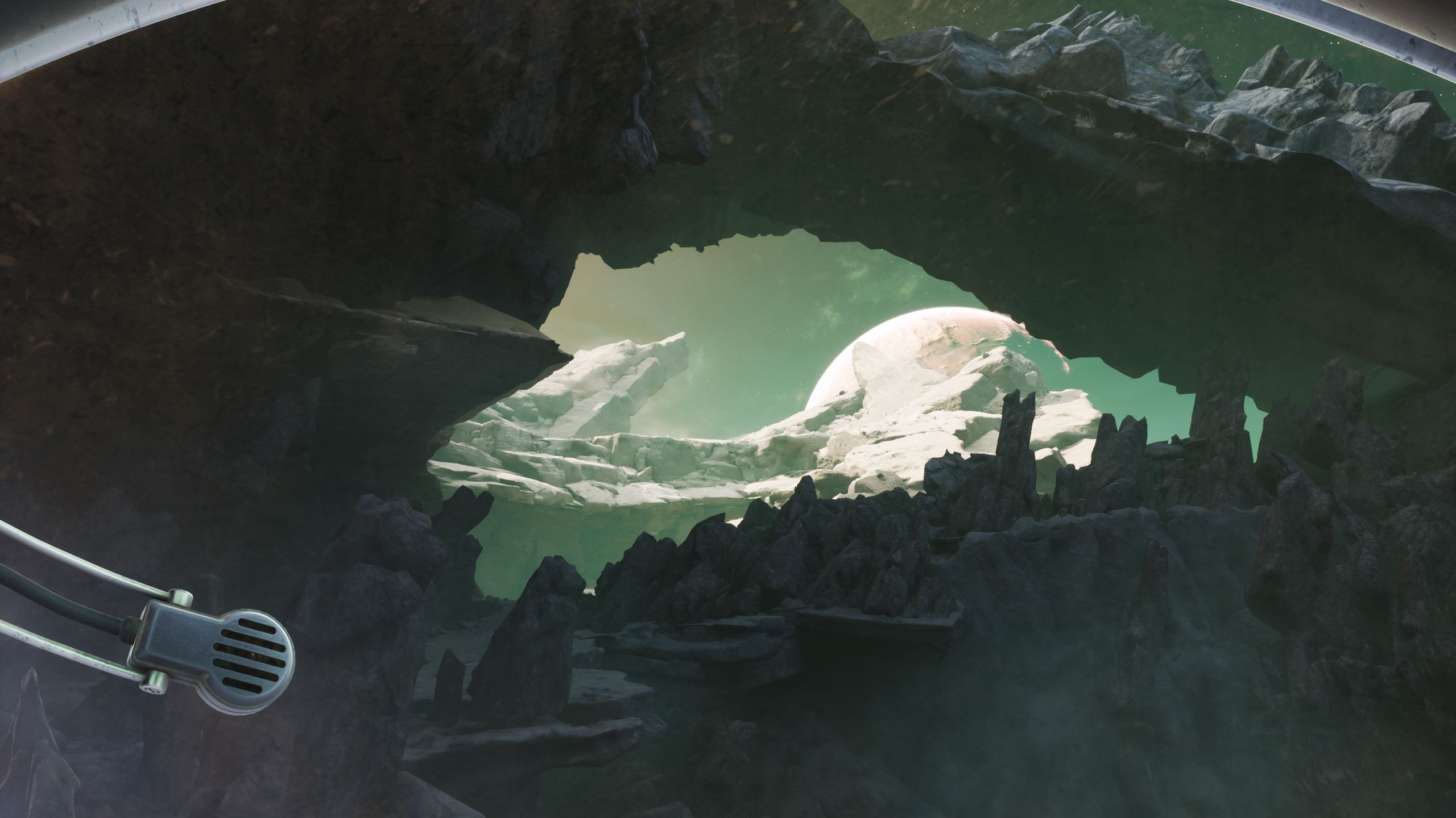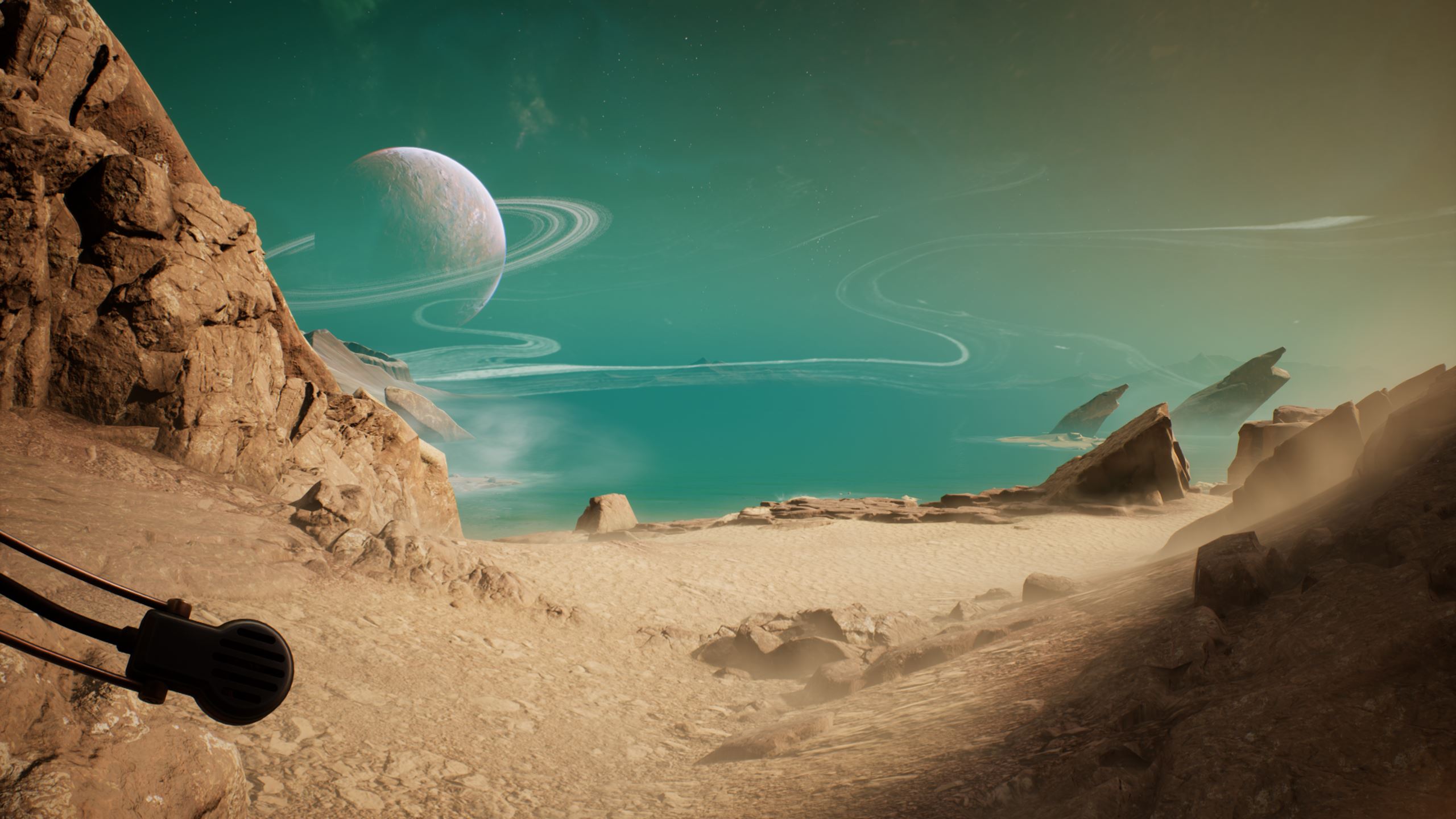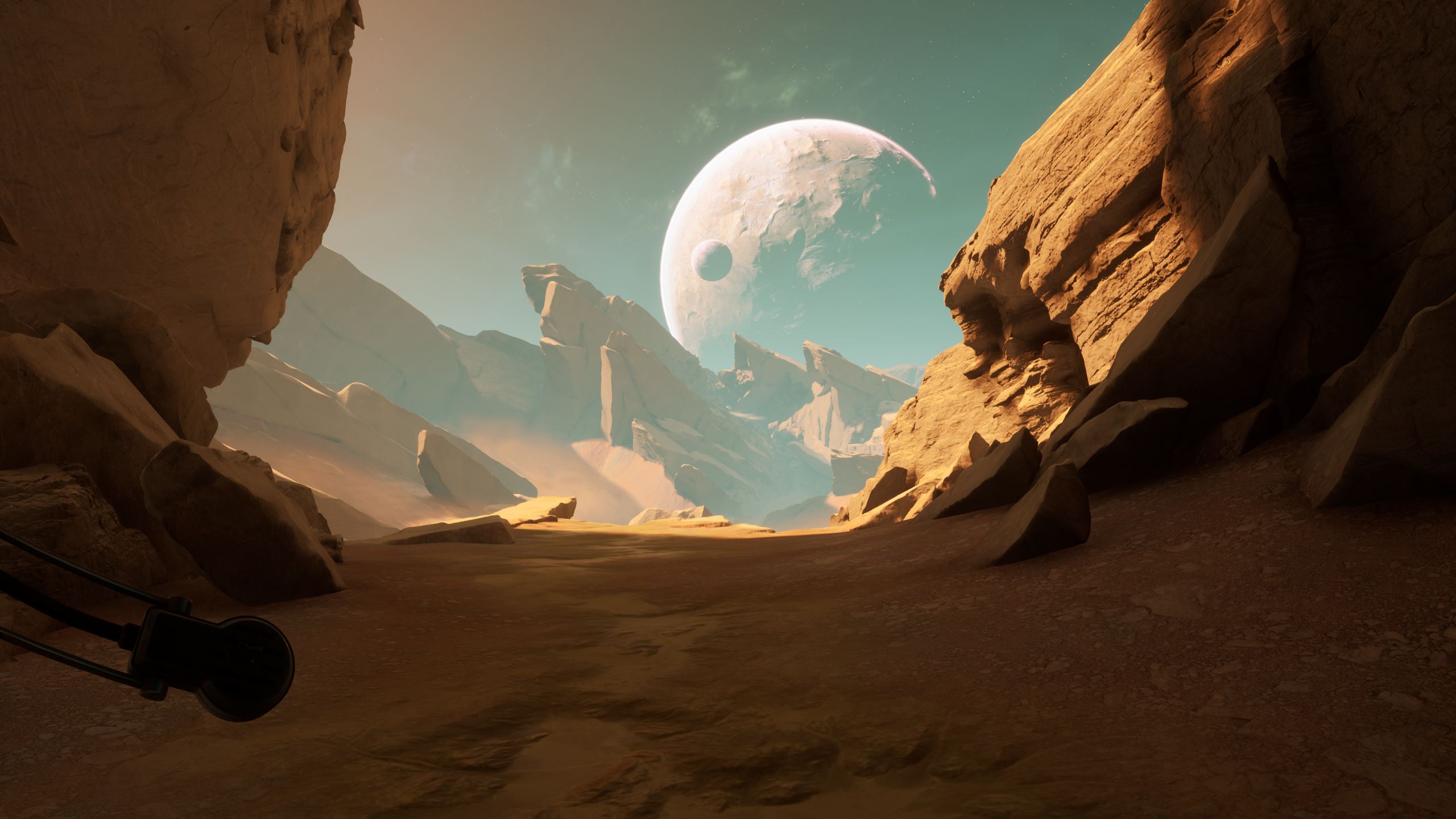 Vous l’avez déjà sans doute remarqué, The Invincible est beau. Très beau. Tout d’abord, il y a les paysages, parfois à couper de souffle, de Regis III. On alterne entre canyons étroits et zones ouvertes, voire des étendues à perte de vue. La direction artistique est une très grande réussite, et comme pour Scorn, dans un autre registre, je me suis arrêté à plusieurs reprises, afin de contempler la scène proposée par les développeurs. Les équipements, véhicules et différents modules humains, avec leur design rétrofuturiste des années soixante, sont également très bien réalisés et tout à fait cohérents avec l’univers du jeu. La musique est aussi de bonne facture. Toujours discrète, très atmosphérique, elle est même parfois absente, laissant uniquement le bruit des pas et du vent accompagner le joueur. Côté technique, c’est presque un sans-faute, car les performances sont excellentes – même s’il n’y a pas tant de choses à afficher que ça. Par exemple, sur mon PC portable doté d’un Core i5 12500H, de 32 Go de RAM et d’une RTX3060, il tournait en 1440p tout à fond, DLSS qualité à 60 FPS constants. J’ai juste rencontré quelques petits bugs de textures qui ne se chargeaient pas correctement et restaient pixelisées, mais qui ont été corrigés quelques jours après la sortie.