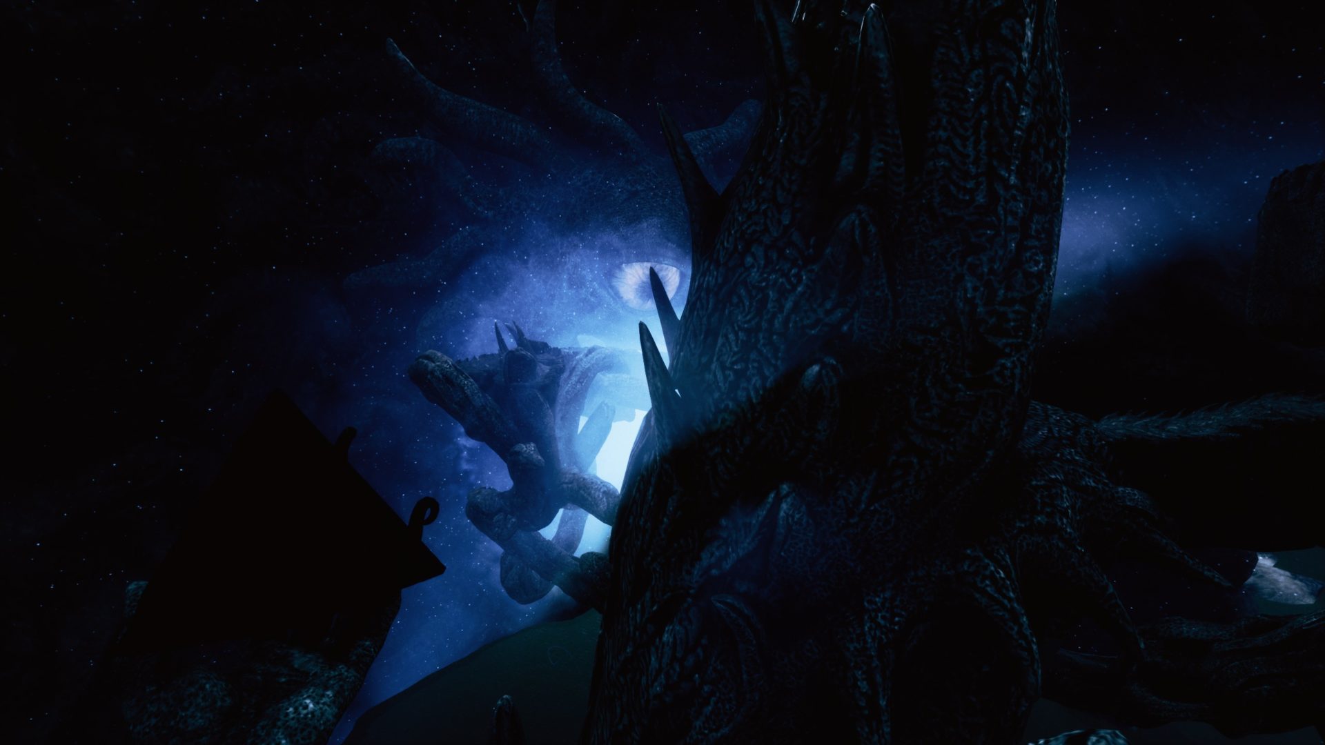 Ce scénario peu original a toutefois l’avantage de permettre au développeur de multiplier les références aux ouvrages et au bestiaire bien connus du reclus de Providence. Shoggoth, Profonds, météorite aux couleurs étranges, rejetons de Shub-Niggurath, sans compter les Grands Anciens eux-mêmes, tous seront au rendez-vous pour le plus grand plaisir des amateurs. Cette avalanche de références (frôlant le fan service) est d’autant plus mis en avant par la réalisation globalement excellente pour un titre de cet acabit. Les décors sont sublimes, s’approchant parfois du photoréalisme pour les sections côtières, et proposent souvent de magnifiques panoramas réussissant à merveille à transmettre les descriptions fantasmagoriques de Lovecraft. Ares Dragonis est avant tout un artiste 3D de formation, et cela se sent dans la qualité visuelle de son jeu. Notons que la bande-originale n’est pas en reste avec des morceaux atmosphériques et d’autres plus orchestraux apportant beaucoup à l’ambiance réussie du titre.