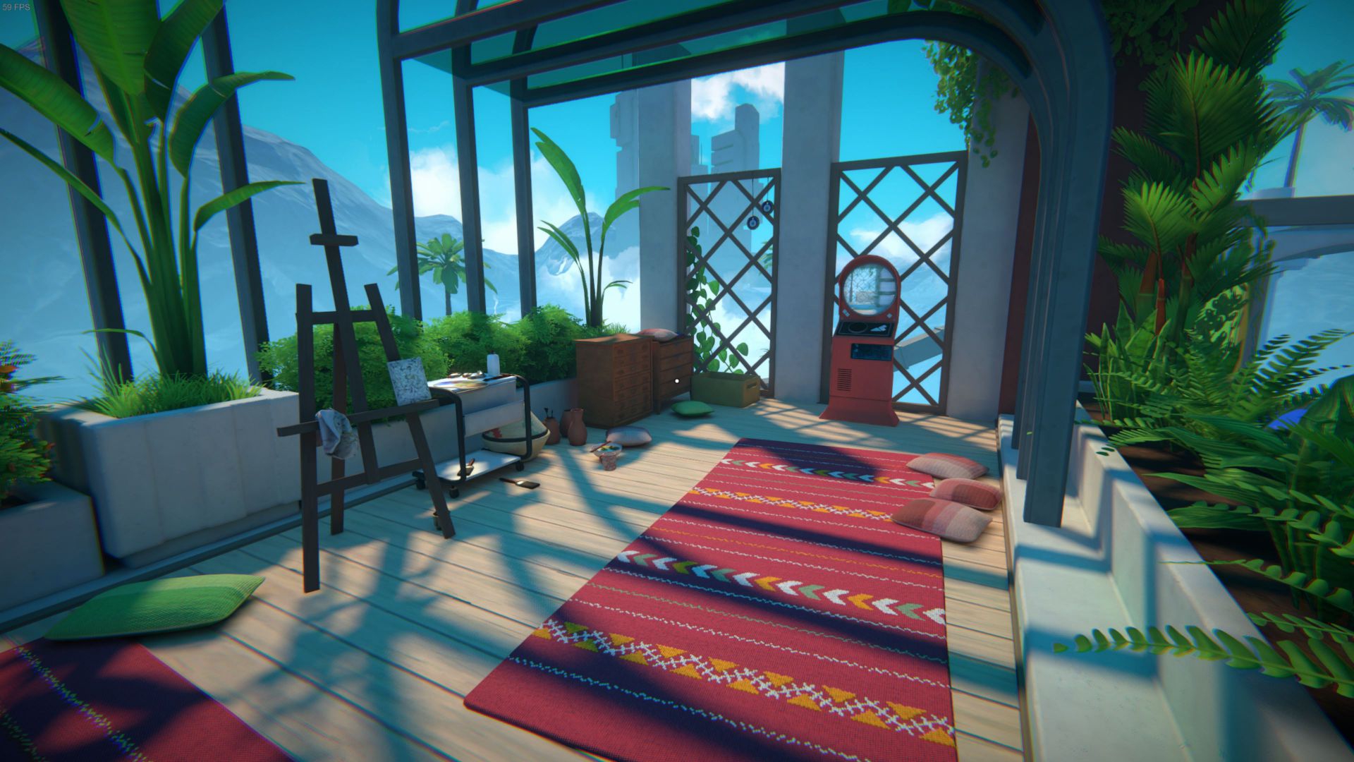 Le scénario, aussi cryptique qu’à la mode, à base de recherche d’un remède miracle au dérèglement climatique, n’est qu’un prétexte pour se balader dans de très jolis environnements. De nombreux audiologs viennent ajouter un peu d’épaisseur au lore, mais celui-ci ne semble pas spécialement avoir de rapport avec les mécaniques de jeu. Néanmoins, les doublages sont très corrects, et on peut caresser un chat numérique parlant, qui ronronne alors brièvement de manière très satisfaisante. La direction artistique est simple, mais franchement réussie, et certains filtres – notamment l’effet « peinture » – ajoutent une petite touche artistique vraiment chouette. Certes, il n’y a pas beaucoup de vie et les zones de jeu sont petites, mais l’ensemble reste tout à fait cohérent avec l’univers. D’autre part, du côté technique, cela permet au jeu d’afficher 60 FPS stables, tout à fond en 1440p, même sur mon PC portable doté d’un Core i5-12500H et d’une RTX 3060.
