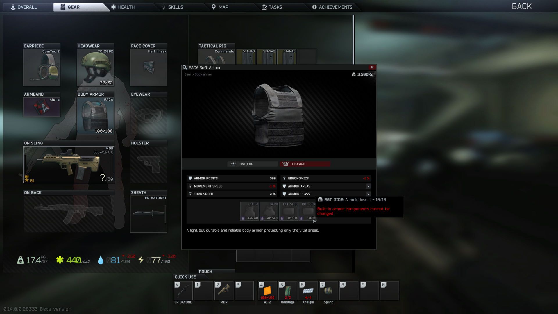 L’autre nouveauté majeure est également l’introduction du franchissement des obstacles (vault), qui tardait à faire son apparition. À vous les 400 mètres haies sous le feu du nouveau boss de Street of Tarkov : Kollontay. A priori, ça ne révolutionne tout de même pas trop le gameplay, mais c’est toujours sympa à prendre. Au contraire, le fait de pouvoir épauler à gauche semble être un sacré game changer : il est maintenant possible de rester en couverture maximale tout en peekant à gauche. Et tant qu’on parle de protections, on vous conseille d’aller prendre une aspirine, de gros changement arrivent sur les plaques d’armure : tous les casques, les gilets et autres damart pare-balles ont maintenant différentes zones délimitées, qui encaissent les dégâts à la place des différents organes situés derrière. D’après les devs, c’est comme dans la réalité : si on voit que le gilet protège à un endroit, c’est bien le cas. Mais si sous les aisselles, il n’y a pas de place pour du kevlar, et qu’une balle vient passer par là, c’est tant pis pour votre gueule. On pourra ainsi réparer les éléments internes d’une armure, ou les plaques à insérer. Un nouveau terreau pour des meta toutes plus obscures les unes que les autres, de l’œil des casuals qui veulent juste looter et tirer dans quelques scavs. Autre nouveauté intéressante, spécifique à Streets of Tarkov, le BTR : il s’agit d’un blindé léger, qui peut faire office de taxi pour vous emmener de manière sûre, à certains endroits de la carte, et même déposer des objets dans votre stash, contre rémunération.