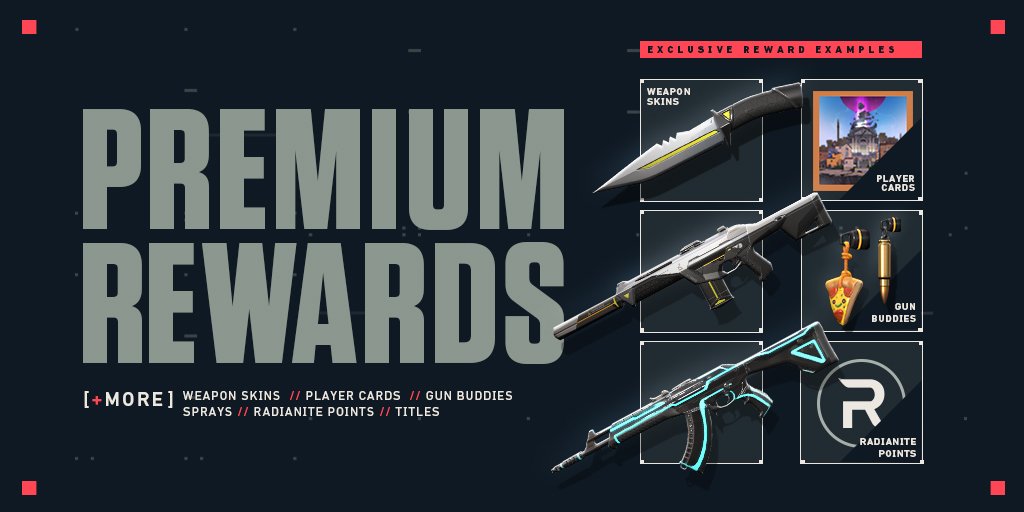 Si vous n’avez pas suivi, Valorant est disponible depuis aujourd’hui. Les détails de la mise à jour qui l’accompagne sont visibles dans notre news précédente. Riot Games profite de l’occasion pour présenter le battle pass. Pour 10€, vous accédez à 50 récompenses premium. Bon, rien de bien novateur : des skins, des tags, des charmes, des cartes. Bref, le modèle économique très classique du free-to-play. Bien évidemment, un système de progression gratuit est aussi disponible, avec moins de contenu à la clé. Pas respect pour moi-même, je vous invite à consulter la page dédiée si vous voulez un aperçu des skins fluorescents.